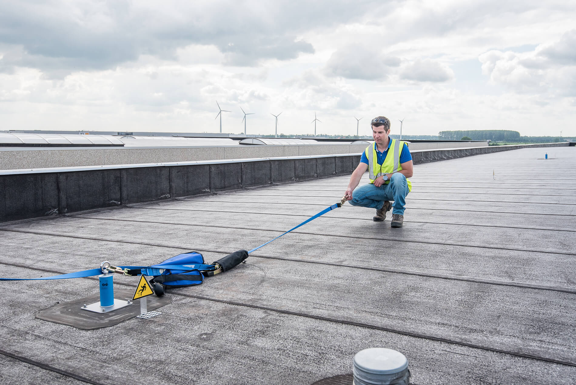 - De SafeLine ankers hebben wij permanent gefixeerd aan het dak, de waterdichte afwerking is gedaan door de dakdekker die ook het dak onderhoudt.