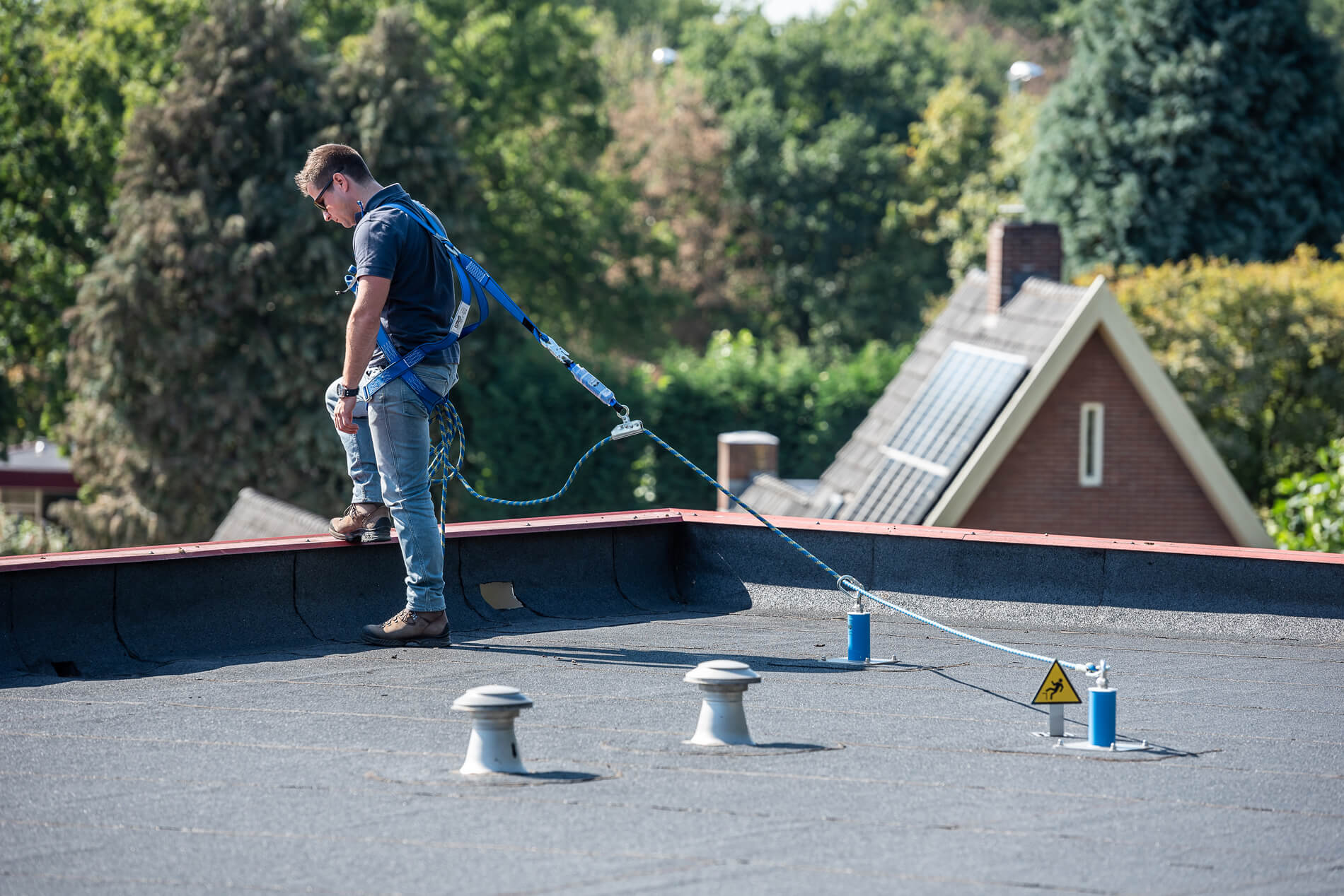 - Het SafeLock valbeveiligingssysteem hebben wij permanent gefixeerd aan het dak, de waterdichte afwerking is gedaan door de dakdekker die ook het dak heeft vernieuwd.