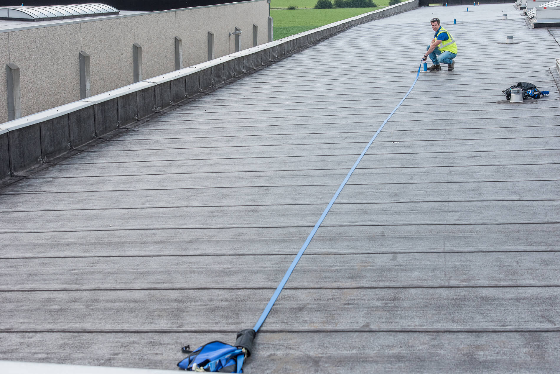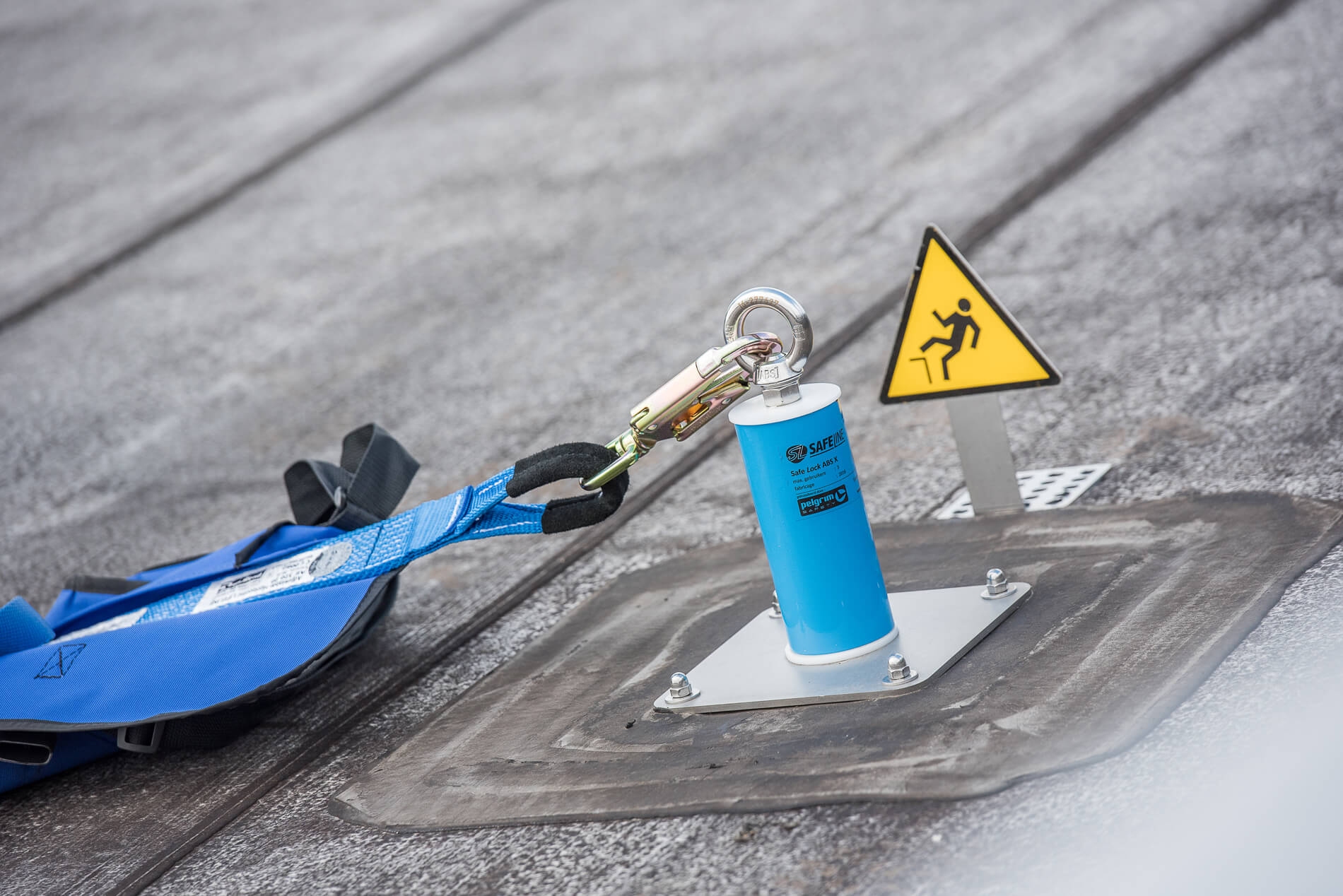 - De SafeLine ankers hebben wij permanent gefixeerd aan het dak, de waterdichte afwerking is gedaan door de dakdekker die ook het dak onderhoudt.