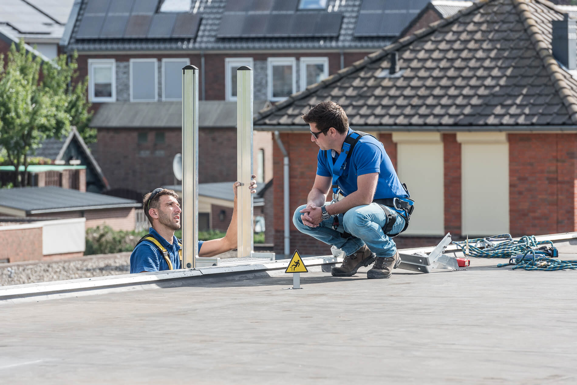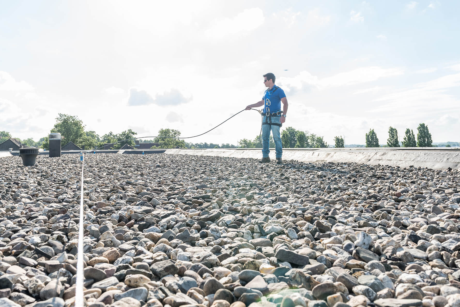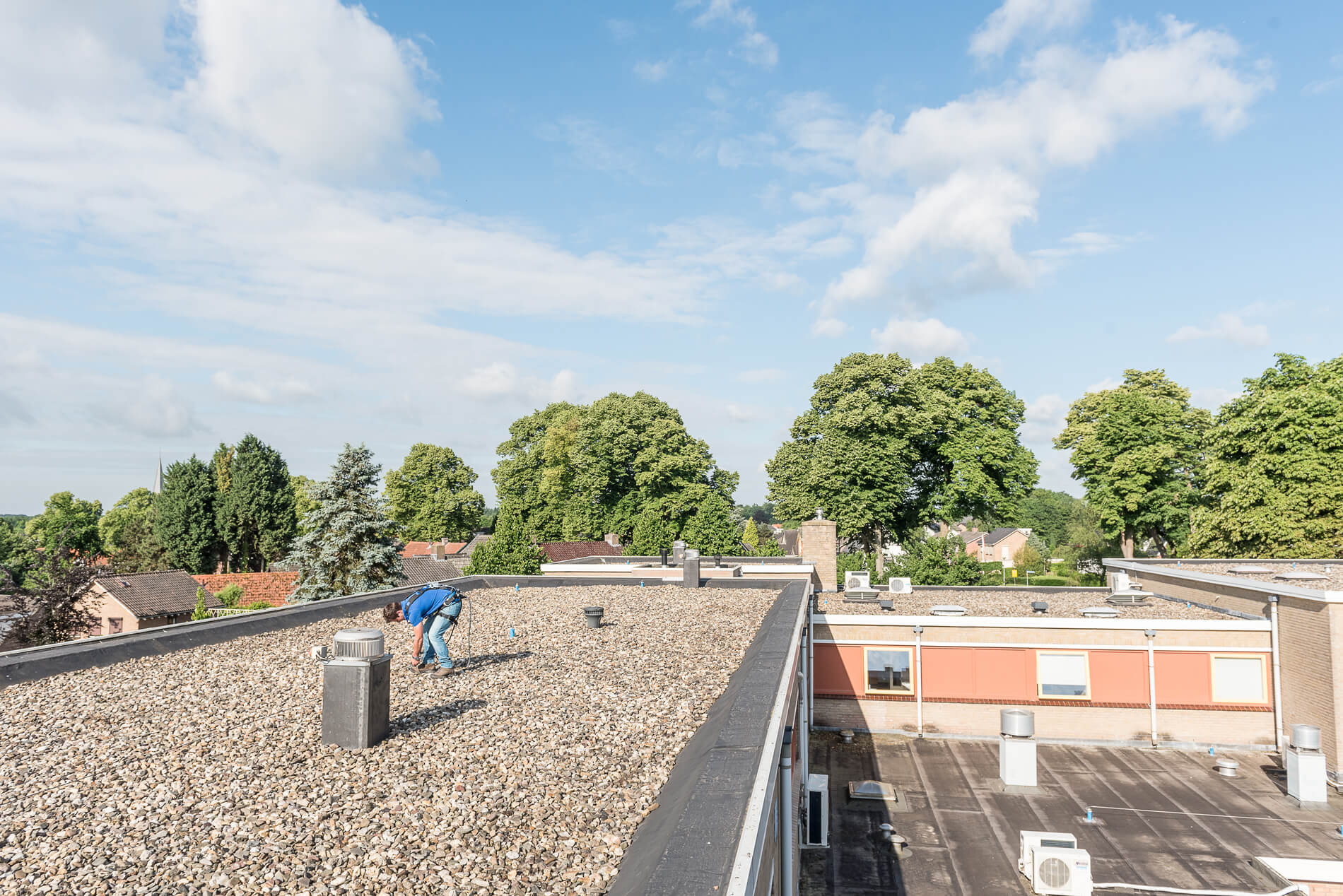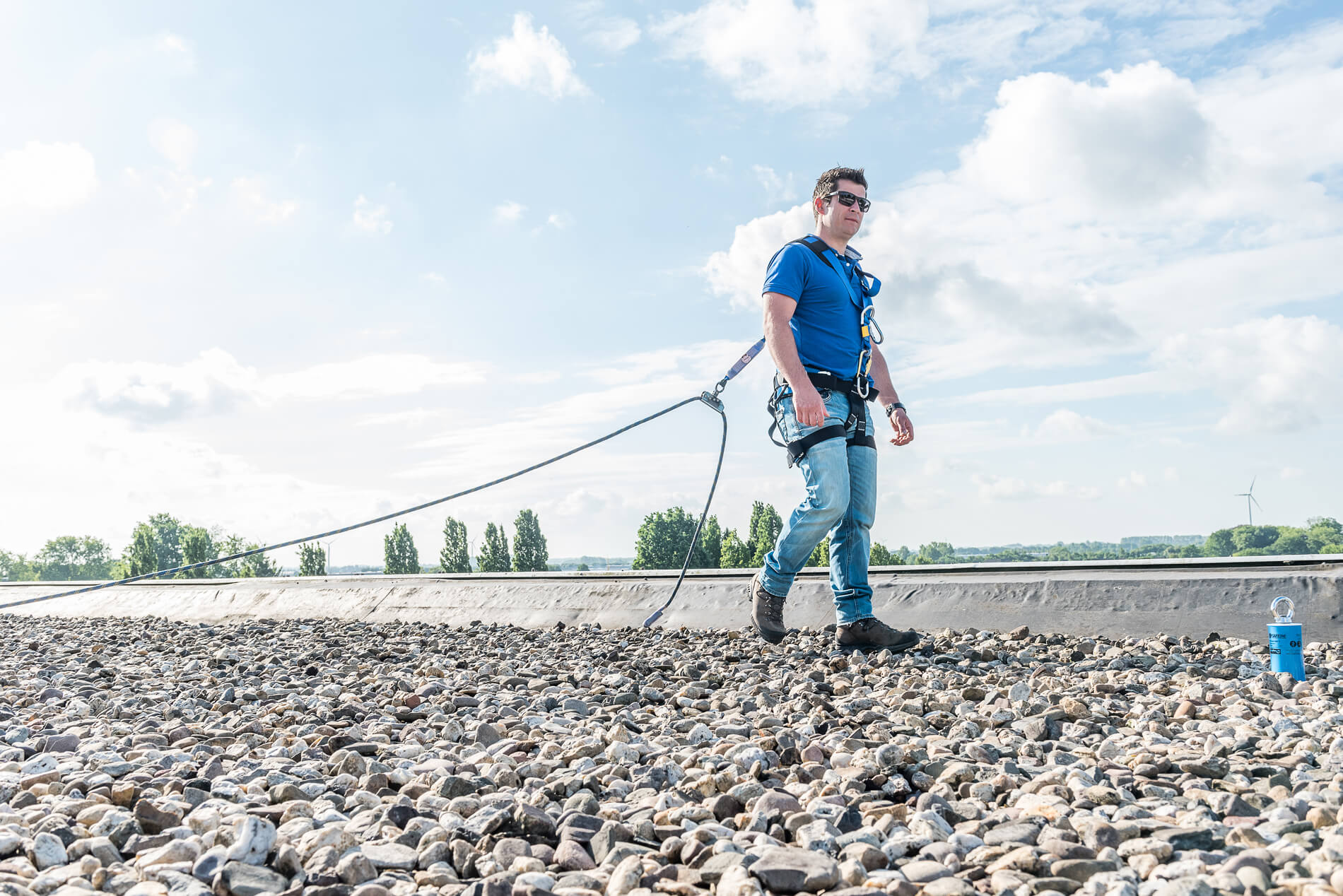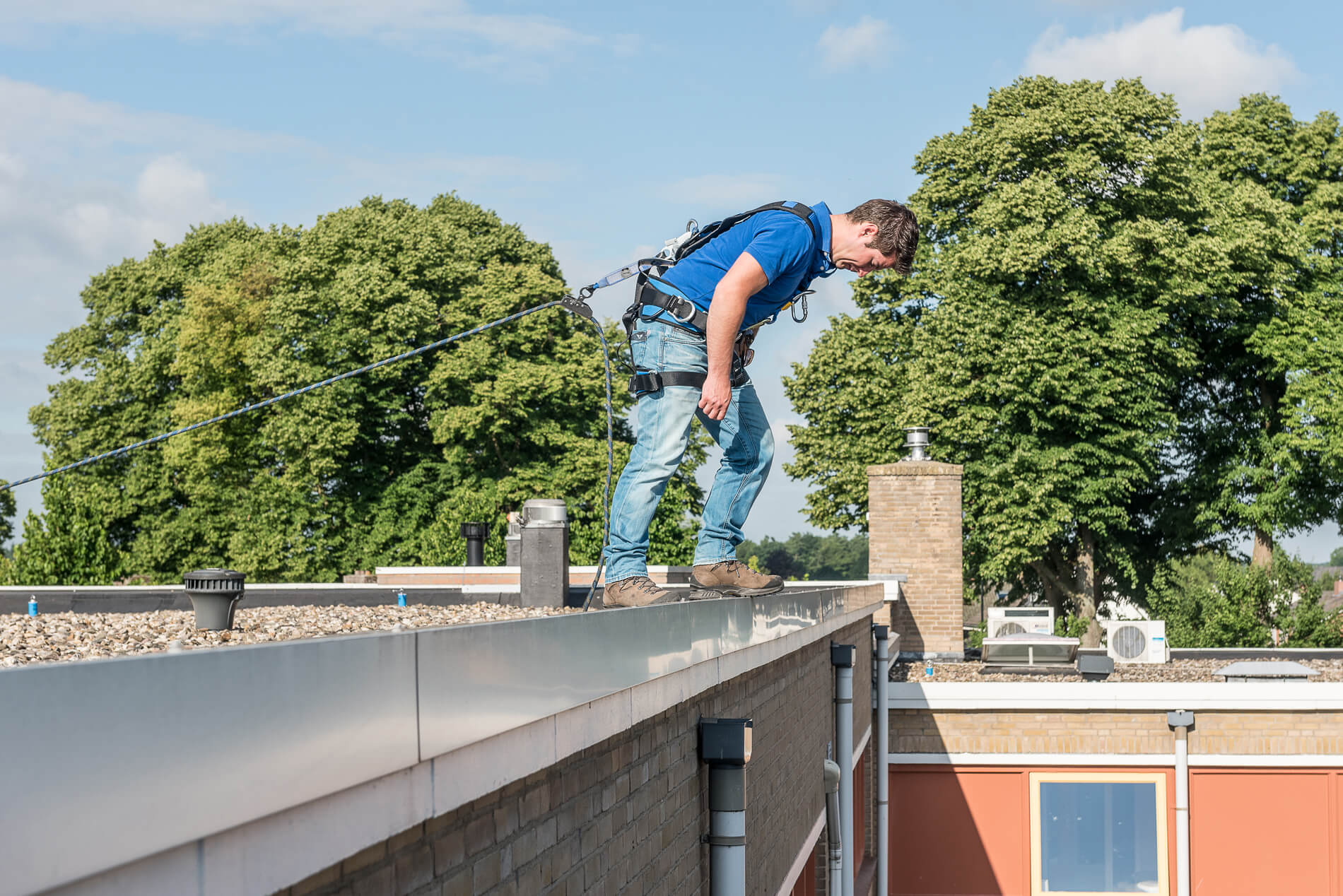 - Het Safe Line valbeveiligingssysteem hebben wij permanent gefixeerd aan het dak, de waterdichte afwerking is gedaan door de dakdekker die ook het dak onderhoudt.